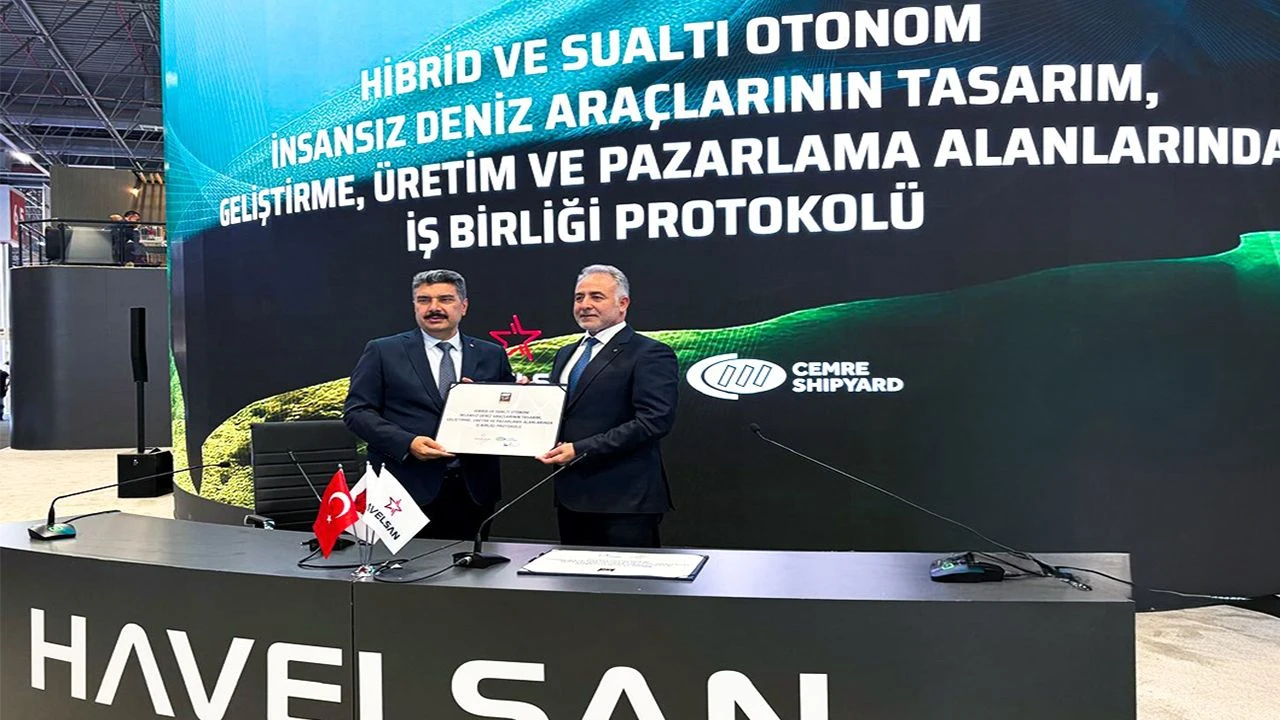 Cemre Tersanesi ile HAVELSAN arasında, hibrit ve sualtı otonom insansız deniz araçlarının tasarımı, geliştirilmesi, üretimi ve pazarlamasına yönelik kapsamlı bir iş birliği protokolü imzalandı.