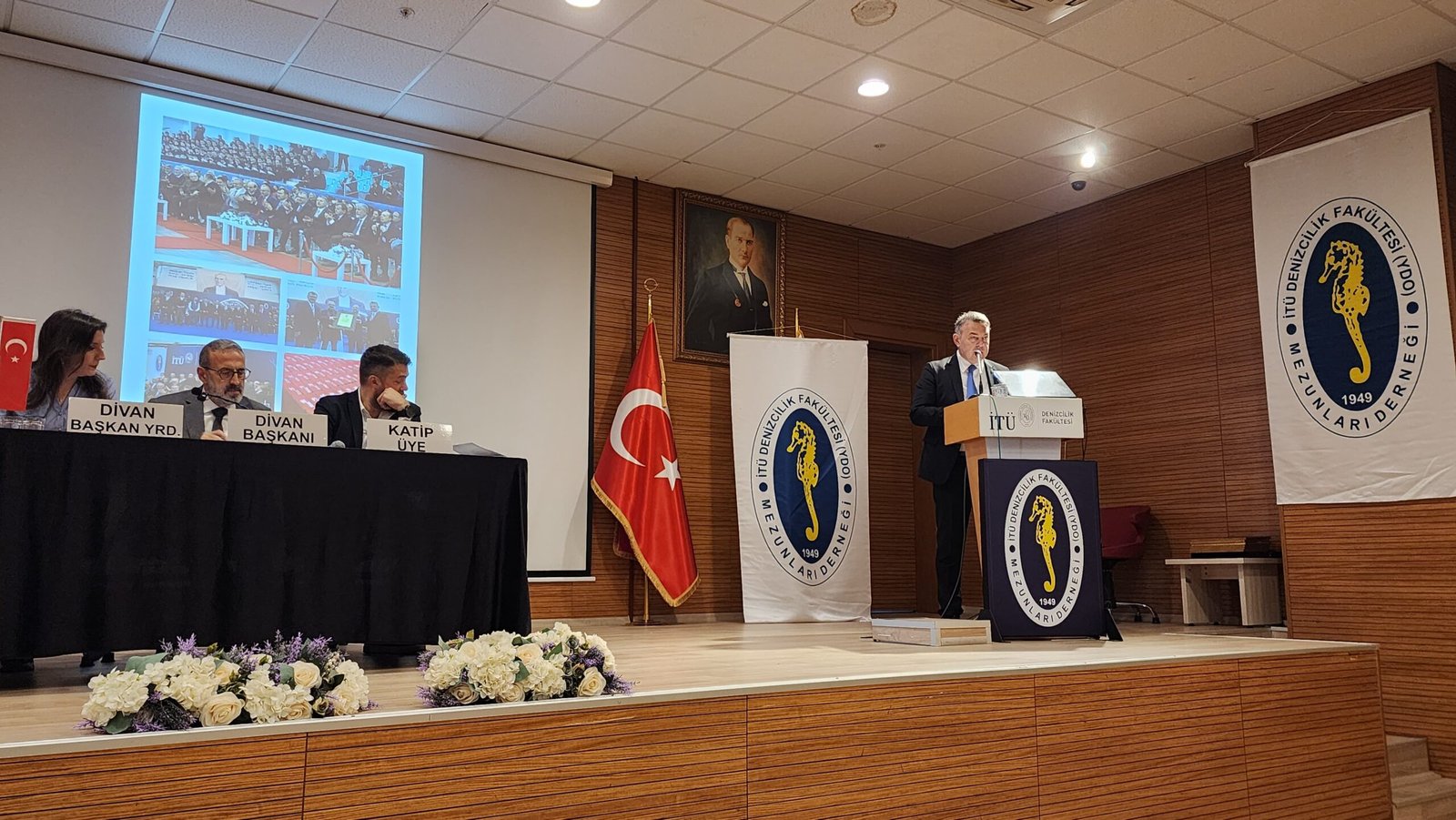 “Bugün sizlere, DEFAMED Yönetim Kurulu olarak yapmış olduğumuz icraatlarımızı arz etmek maksadıyla huzurlarınıza çıkmış bulunuyorum,” diyerek konuşmasına başlayan Teker, görevi 25 Eylül 2021 tarihinde devraldıklarını hatırlattı. Teker, Türkiye’deki 100 bine yakın vakıf ve dernek arasında DEFAMED’in güçlü varlığını ve saygınlığını sürdürdüğüne dikkat çekti. “İTÜ Denizcilik Fakültesi Mezunları Derneği, kurulduğu 1949 yılından itibaren etkinliğini camiasından alarak, saygınlığını artıran ve hiç azalmayan bir kurum olmuştur. Bizler de görevimizi, selefimizden aldığımız meşaleyi daha da ileriye taşımak amacıyla devraldık” dedi.