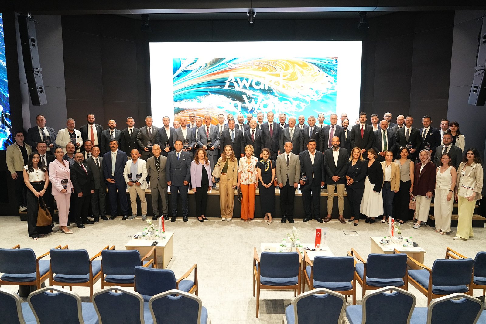 Türkiye İhracatçılar Meclisi (TİM) Dış Ticaret Kompleksi’nde gerçekleştirilen “Award on Water” Gemi Yat ve Hizmetleri Sektörü İhracat Ödül Töreni’ne; Ticaret Bakan Yardımcısı Özgür Volkan Ağar, Ulaştırma ve Altyapı Bakan Yardımcısı Durmuş Ünüvar, Ulaştırma ve Altyapı Bakanlığı Tersaneler ve Kıyı Yapıları Genel Müdürü Salih Tan, Türkiye İhracatçılar Meclisi (TİM) Başkanı Mustafa Gültepe, İMEAK Deniz Ticaret Odası Başkanı Tamer Kıran, Gemi Yat ve Hizmetleri İhracatçıları Birliği (GYHİB) Başkanı Cem Seven, Yalova-Altınova Tersane Girişimcileri San. Ve Tic. A.Ş. (YATGİAŞ) Başkanı Şükrü Fazıl Uzun, İstanbul İhracatçı Birlikleri (İİB) Koordinatör Başkanı ve İstanbul Mobilya, Kağıt ve Orman Ürünleri İhracatçıları Birliği Başkanı Erkan Özkan, İHBİR Başkanı Kazım Taycı ile TURMEPA Başkanı Şadan Kaptanoğlu katıldı.