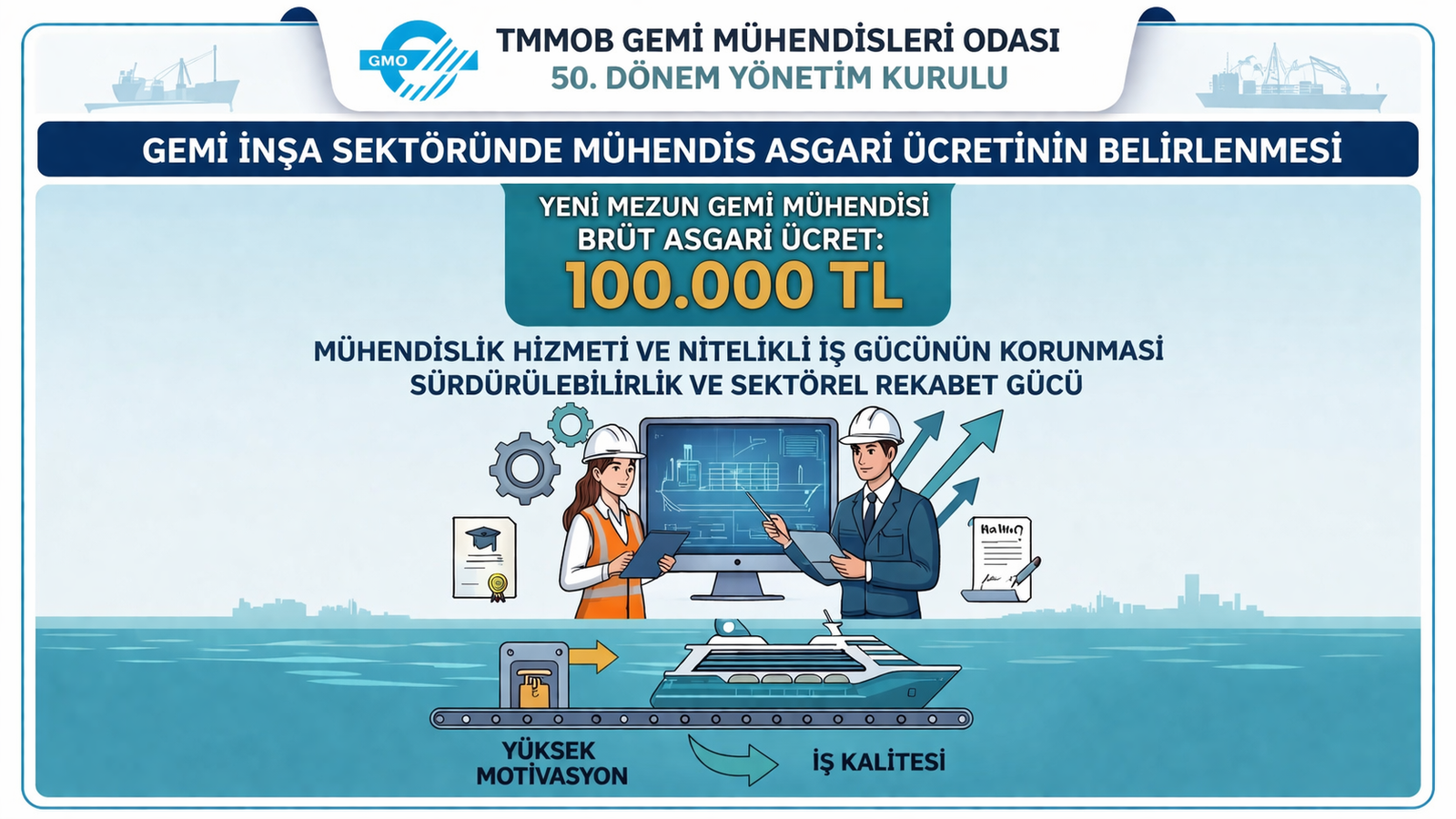 Yapılan değerlendirmeler sonucunda, yeni mezun mühendisler için sürdürülebilir bir yaşam standardını sağlayan kritik eşik olarak 100.000 TL brüt ücret (yaklaşık 65.000 TL net) belirlendi. Bu rakam, Yönetim Kurulu tarafından gemi mühendisi asgari ücret seviyesi olarak açıklandı.