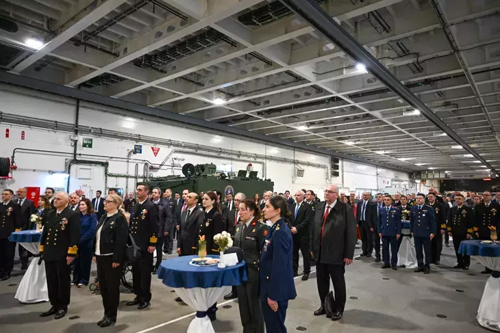 Etkinliğin ardından gemide gerçekleştirilen resepsiyonda konuşan Deniz Görev Grup Komutanı Tümamiral Mevlüt Savaş Bilican, Türkiye’nin savunma sanayisindeki yenilikçi yaklaşımının ve üretim kapasitesinin fuar kapsamında sergilendiğini belirtti. Deniz kuvvetlerine ait sistemler ile insansız hava araçlarının yüzde 80’inden fazlasının yerli imkânlarla üretildiğini ifade etti.