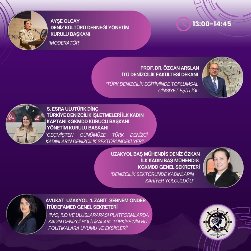 Etkinlikte akademi, sektör ve sivil toplumdan çok sayıda uzman isim konuşmacı olarak yer alacak. Panelde; denizcilikte toplumsal cinsiyet eşitliği, kadın liderliği, kariyer yolculukları, inovasyon ve girişimcilikte kadınların etkisi gibi konu başlıkları ele alınacak.