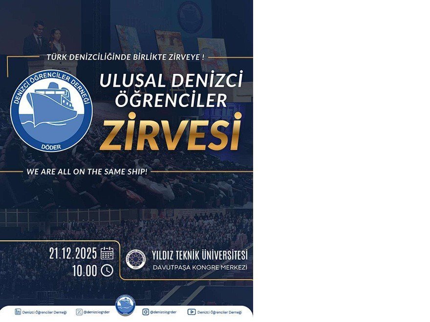 Denizci Öğrenciler Derneği (DÖDER), sektörün deneyimli isimleriyle geleceğin denizcilerini bir araya getirecek büyük ölçekli bir etkinliğe hazırlanıyor. “Ulusal Denizci Öğrenciler Zirvesi”, 21 Aralık 2025 tarihinde Yıldız Teknik Üniversitesi Davutpaşa Kongre Merkezi’nde gerçekleştirilecek.